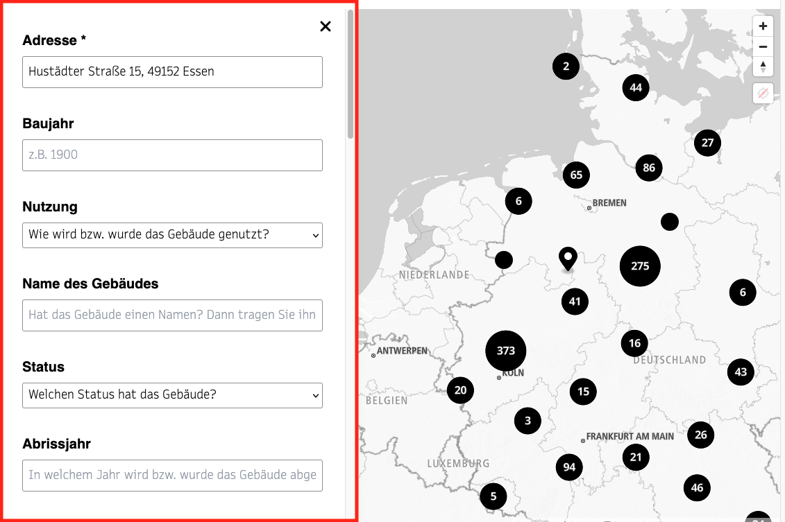 Damit der Ort korrekt auf der Karte angezeigt wird, ist es wichtig, dass Adresse oder Postleitzahl als [Pflichtfeld](https://wiki.beabee.io/beabee-help-center/engagement/crowdnewsroom/wie-du-einen-crowdnewsroom-anlegst/crowdnewsroom-inhalt/so-machst-du-antworten-verpflichtend) festgelegt und korrekt ausgefüllt wird.
