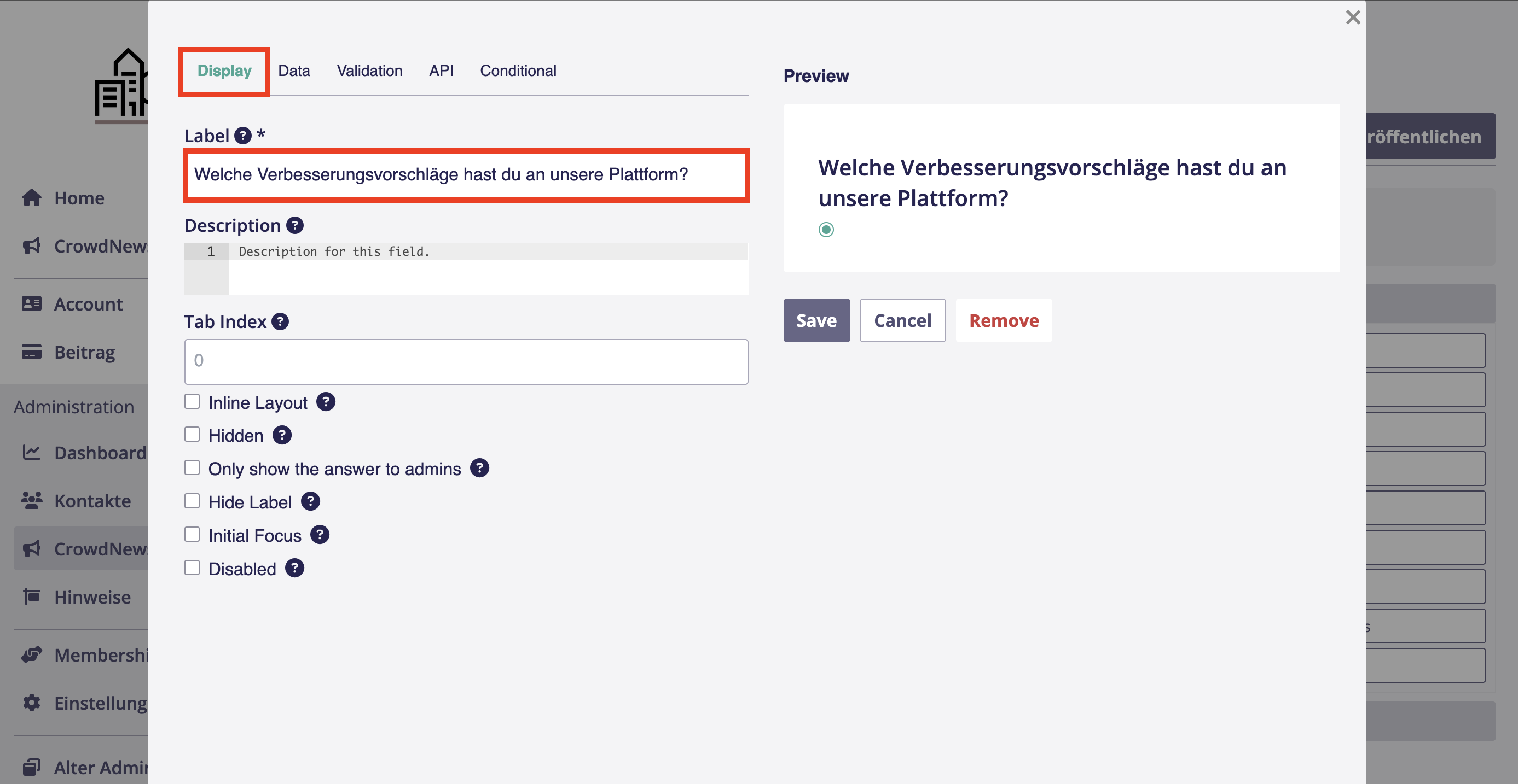 2. Trage in dem Feld *Label* die Frage ein, die du den Teilnehmenden deiner Umfrage stellen möchtest.